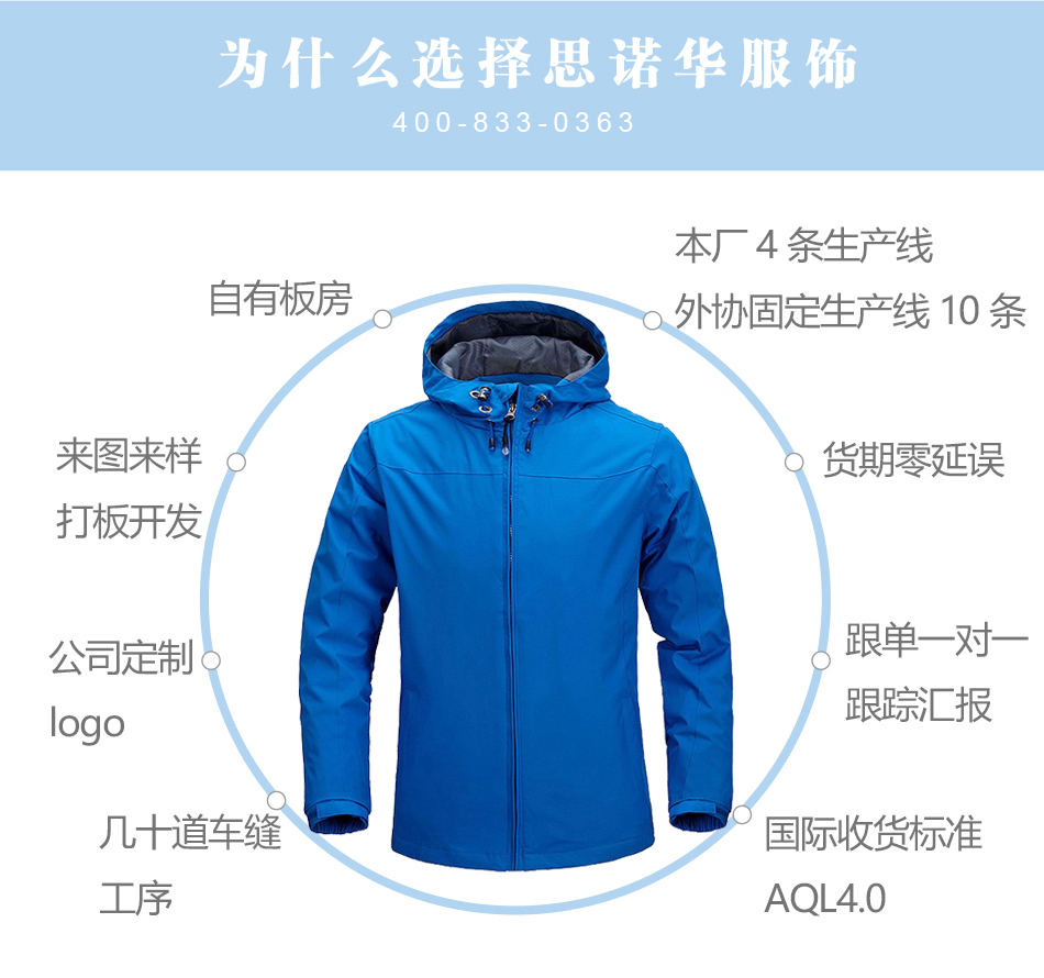 思諾華服飾-單層防水透氣戶外運動服沖鋒衣定制加工